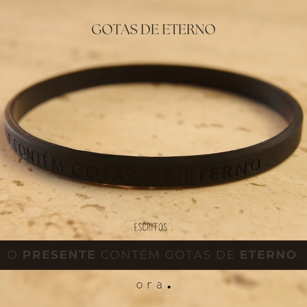 A sua vida não é uma corrida em direção ao futuro. O seu maior poder está no agora. O mundo te ensinou a viver no que virá, a adiar a felicidade para o amanhã. Mas a verdade é que o seu único tempo é o presente. A Pulseira Gotas de Eterno é o lembrete constante de que "O Presente Contém Gotas de Eterno". Ela é o sinal da sua decisão de viver a sua filiação divina, de honrar o Criador que sustenta cada instante da sua vida. Use-a como a sua disciplina diária para entender que cada pequena ação, cada palavra, cada momento de hoje, ecoa para a eternidade.