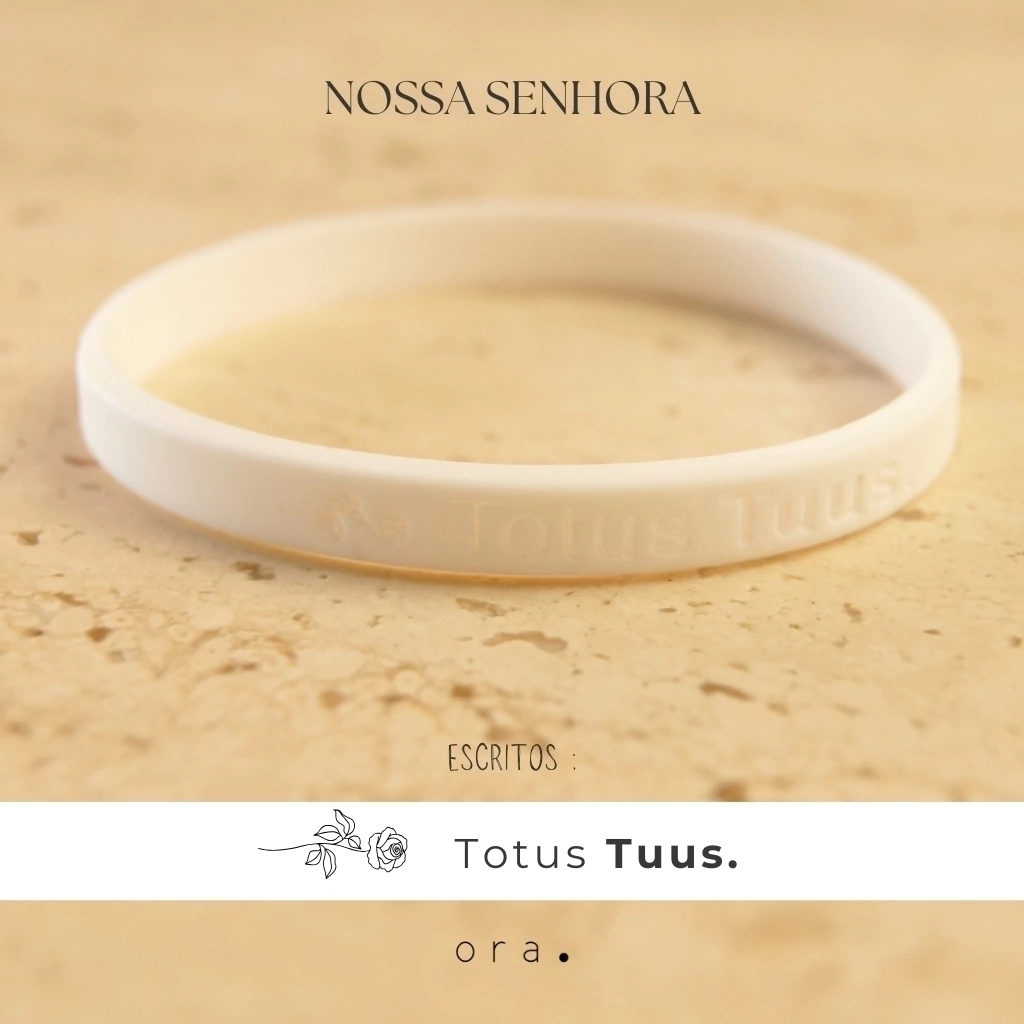 A sua vida não precisa ser pesada. Você não precisa carregar o fardo sozinho, nem ter o controle de tudo. A Pulseira de Silicone Totus Tuus é o sinal da sua decisão de caminhar com a Virgem Maria. É o lembrete constante de que a sua força não está em ter o controle, mas em entregá-lo por completo. Com a frase “Totus Tuus” (Todo Teu), ela é o seu compromisso de abrir mão do seu plano para viver sob o manto e a guia de Maria, que te leva ao único caminho que importa. É a sua disciplina diária para encontrar a paz na entrega e o propósito na confiança total. Use-a como a sua prova de que o seu maior ato de força foi o de se entregar por inteiro.